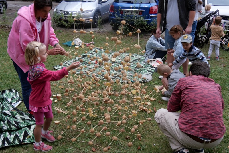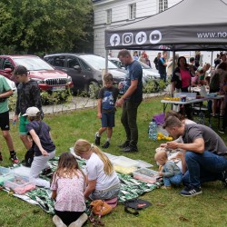 Dzieci i rodzice podczas warsztatów plastycznych