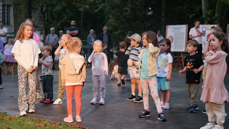 Dzieci i rodzice oglądają przedstawienie