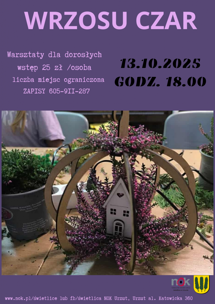 Warsztaty dla dorosłych wstęp 25 zł /osoba liczba miejsc ograniczonazapisy 605-911-28713.10.2025godz. 18.00