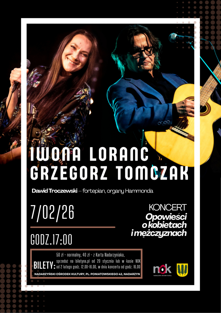 Bilety 50 zł normalny, 40 karta Nadarzyniaka, sprzedaż od 20 stycznia na biletyna.pl, w kasie NOK od 2 lutego w godzinach 12.00 – 16.00, w dniu koncertu od godz. 16.00